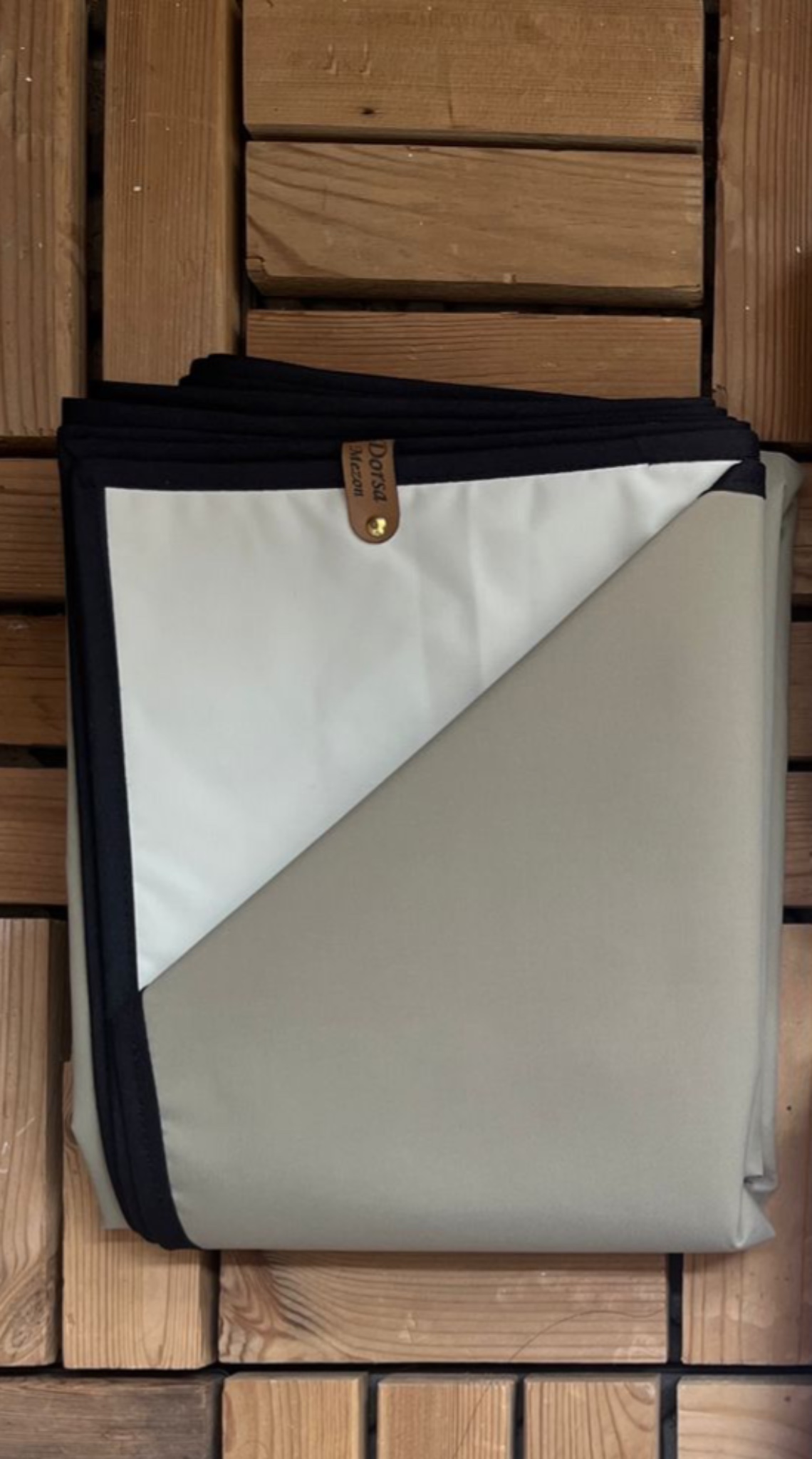 • قطعا این وسیله مناسب شماست یک زیرانداز دو لایه که هر دو طرف آن ضد آب است در اندازه ی 1/5 در 1/5 متر میتواند جلوی هرگونه اب و کثیفی را بگیرد و روی خود نگهدارد و به لایه زیرین و یا حتی به فرش پس ندهد.