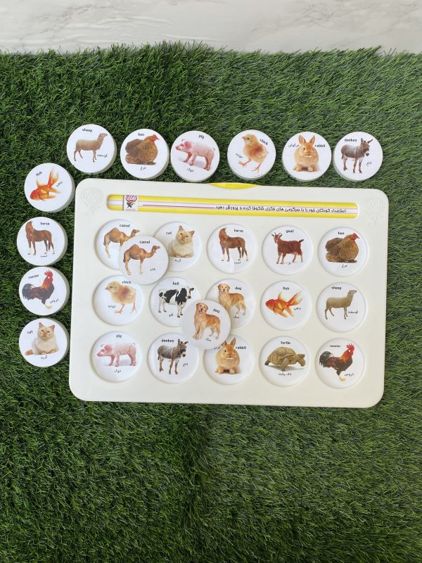 هوش چین یک تکه یک ابزار آموزشی بسیار مناسب برای زبان آموزی به دو زبان فارسی و انگلیسی برای کودکان گروه سنی۱ تا ۳ سال است. با قرار دادن هر صفحه در قالب مخصوص و در اختیار داشتن درپوش های مرتبط با هر صفحه، به کودک بیاموزید که مشابه هر تصویری که درون صفحه وجود دارد، درپوش مرتبط را پیدا کرده و در جای مناسب خود قرار دهد. این وسیله آموزشی جهت تقویت مهارت های چشم و دست، زبان آموزی، مهارتهای حرکتی دست، شناخت پدیده ها می باشد.