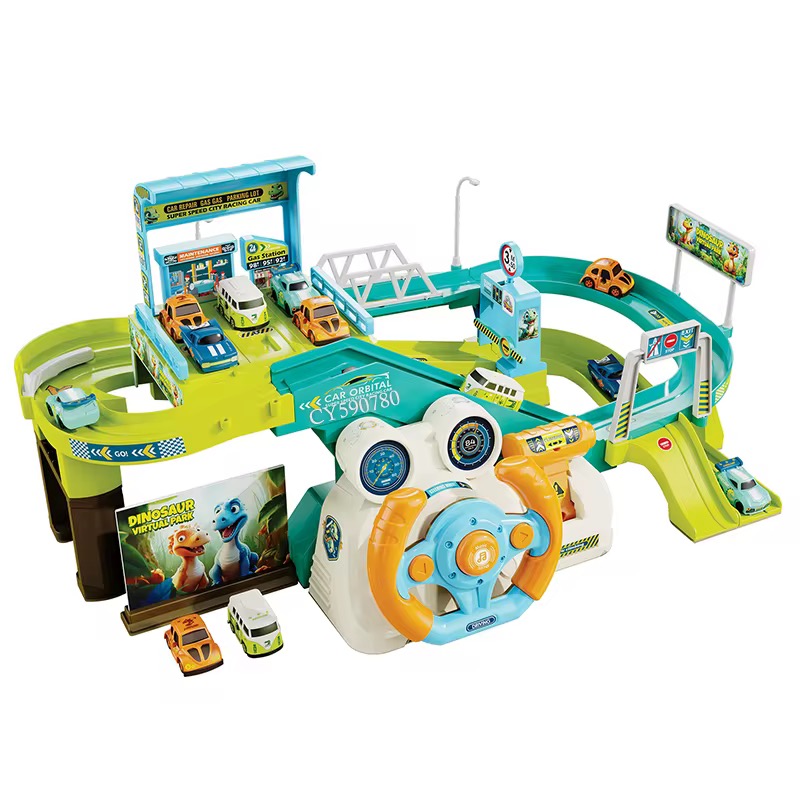 در مسیر پایین رفتن لوکوموتیوها تابلو و بیلبورد و میلههای ایست و یا تغییر مسیر وجود دارند که برای کودکان جذاب هستند. قبل از استفاده از پارکینگ طبقاتی قطعات اون ها رو نصب کنید و تبدیل به یک مسیر پر پیچ و خم با دو طبقه مجهز و زیبا کنید. اسباب بازی پارکینگ طبقاتی شامل یک پارکینگ با کلی وسایل و امکانات شگفت انگیز برای بازی کودکان و سرگرمی آنها است. این پارکینگ و ریسینگ دارای قسمتهای مختلفی مانند آسانسور، رمپ شیبدار، محل پارک لوکوموتیو، پمپ بنزین، محل استراحت و … است. این اسباب بازی با داشتن ۴ عدد لوگوموتیو در مدل های متنوع میتونه کودکان بخصوص پسران رو ترغیب به ساعت ها بازی با اون کنه.